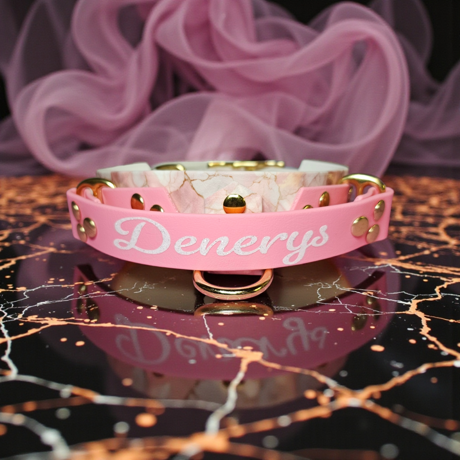 Tous nos colliers, laisses et accessoires sont personnalisables, pensés pour refléter la vraie personnalité de ton chien.