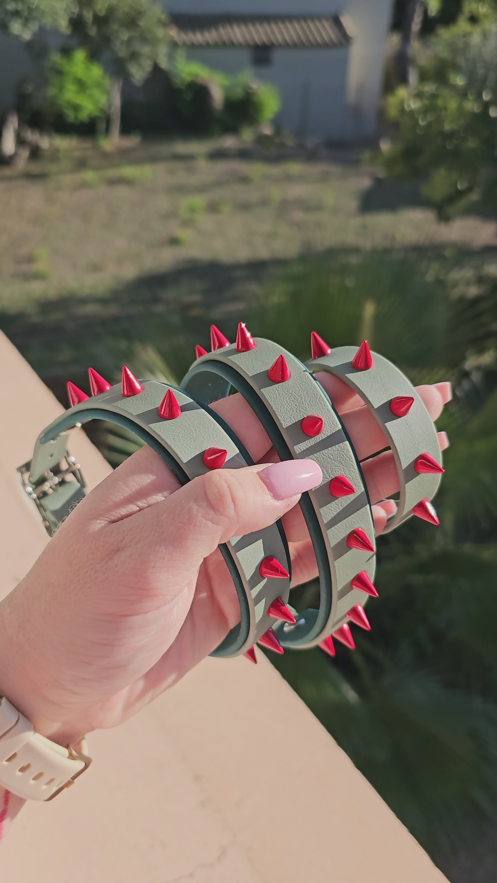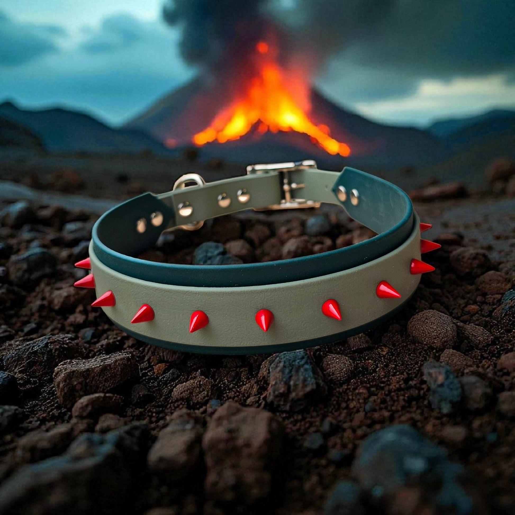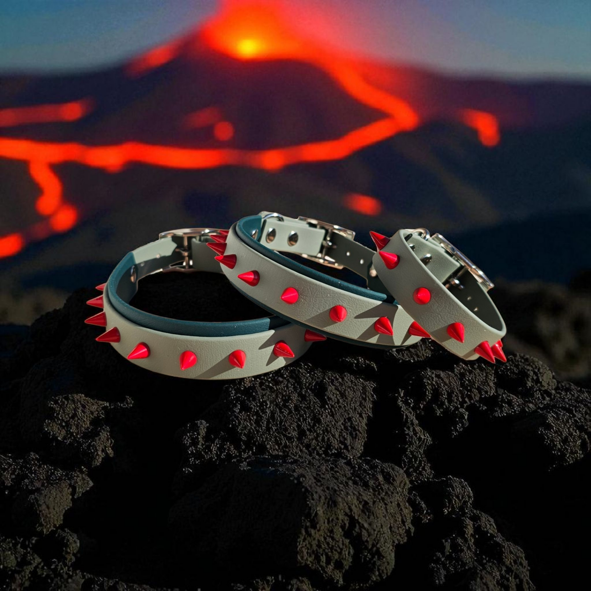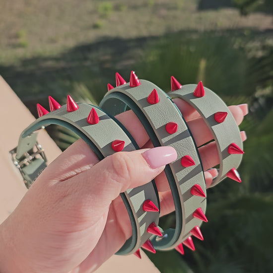 Des colliers bi-largeur en BioThaneŸ : large sur la base pour un confort maximal, plus étroit sur le dessus pour un rendu visuel percutant et équilibré. Personnalise la forme et la couleur de tes clous pour un rendu unique.