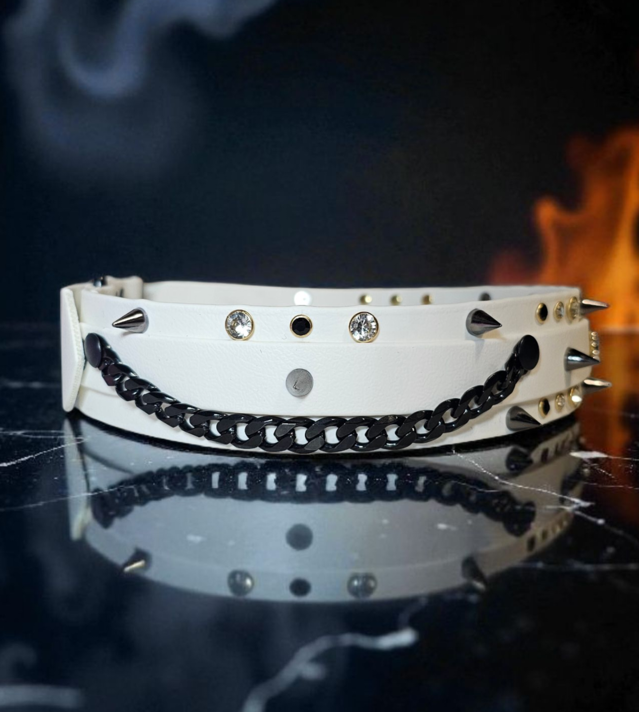 Nous sommes partis sur du Biothane blanc pour symboliser la puretĂ© de son Ăąme. đŸ€