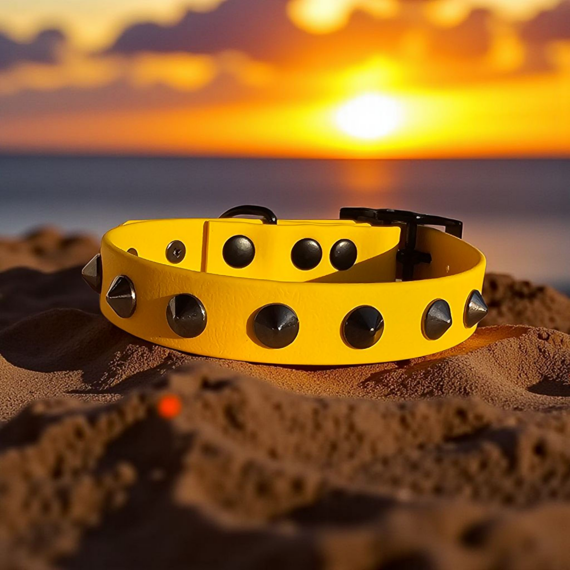 Des colliers en BioThaneŸ qui allient confort, résistance et allure rebelle. Personnalise les en choisissant la forme et la couleur de tes clous, pour créer un style qui te ressemble.